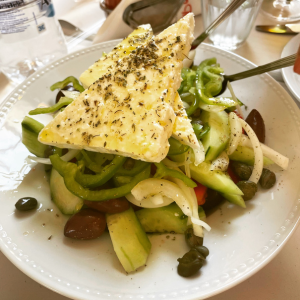 When I visited Greece, I realized the real Greek salad is nothing like what’s served in most U.S. restaurants. There’s no lettuce, no creamy dressing—just fresh vegetables, briny olives, and thick slabs of feta cheese drizzled with golden olive oil and sprinkled with oregano. It’s simple, rustic, and bursting with Mediterranean flavor. This authentic version captures exactly what you’d be served at a seaside taverna on a summer afternoon in Greece.
